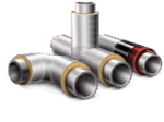 - Фасонные элементы трубопроводов – специализированные изделия и детали, требующиеся для поворота магистрали, её перекрытия, дополнительного предохранения на определённых участках прокладывания и для прочих задач. В их обширный перечень включены, к примеру, опоры для ППУ-труб, изолированные тройниковые ответвления и прочий сортамент.