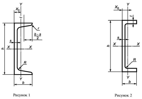 Вид поперечного сечения швеллеров типа «У» и «С» представлен на рисунке 1, а для типов «Л», «Э» и «П» представлен на рисунке 2.